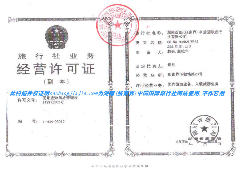 版權(quán)所有:湖南西部(張家界)中國(guó)國(guó)際旅行社有限公司 地址:張家界市華天城鉑金公寓六樓 郵編:427000 |