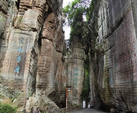 清嘉慶年間辟有洗心池!安欢T”如斧斫神劈,為石林天成,石林壁上鐫滿歷代文人的詩詠。這里古柏參天,藤蘿倒掛,環(huán)境幽美。有壁石如書的萬卷書者,有嵐霧束腰的七級青石培英塔。凝神盤坐的南海觀音是一塊天然造型的巨石,惟妙惟肖。觀音巖周圍,環(huán)繞著具有明清風(fēng)格的地藏庵、嵩山堂、水府閣等建筑物,布局靈巧緊湊,主題鮮明,因勢造景。景點間曲徑迂回,迷趣深奧,稱八陣圖。景區(qū)內(nèi)的河灘上有兩處溫泉,氤氳縈繞,水溫適宜(41℃),水質(zhì)良好,能治療多種疾病。縣城人民經(jīng)“不二門”前往溫泉就浴者絡(luò)繹不絕,現(xiàn)又增建了石牌坊和民俗博物館。