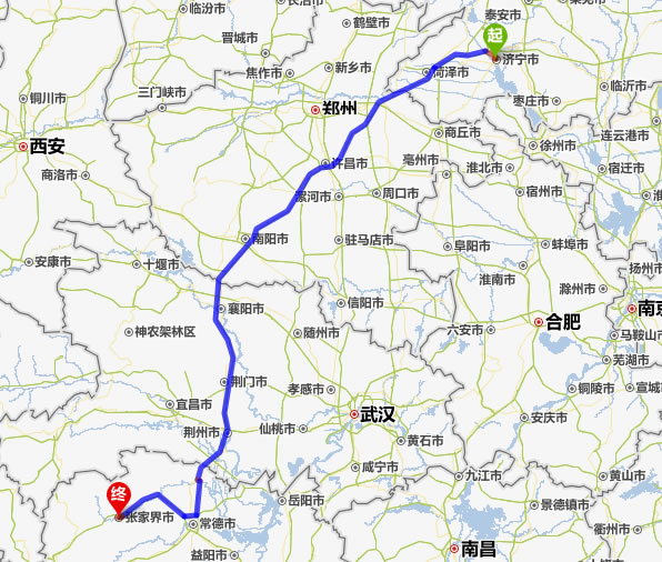 濟(jì)寧去張家界自駕車(chē)自助游線(xiàn)路圖全程高速):