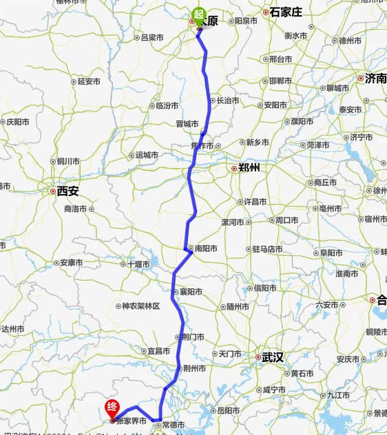 晉中去張家界自駕車自助游線路圖全程高速):