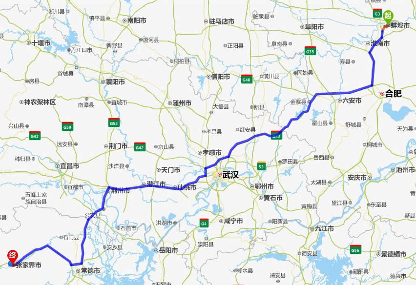 現(xiàn)在位置:張家界旅行社->交通指南->自駕車路線 -> 蚌埠到張家界旅游自駕車線路-蚌埠市去張家界自己開車要多長時間,有多少公里
