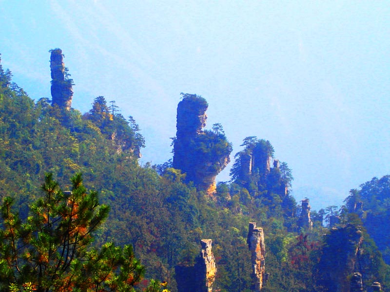 下 午:可選擇步行(步行下山一般時間為2小時左右)或者乘坐天子山索道(索道票72元/人自行購買)下山,游覽巧奪天工的--【十里畫廊】,可以選擇步行或者乘坐觀光小火車游覽十里畫廊(觀光小火車票單程38元/人自行購買),沿途欣賞天臺三姐妹峰、向王觀書、黃昏戀、壽星迎賓、采藥老人、錦鼠觀天、猛虎嘯天等景點;